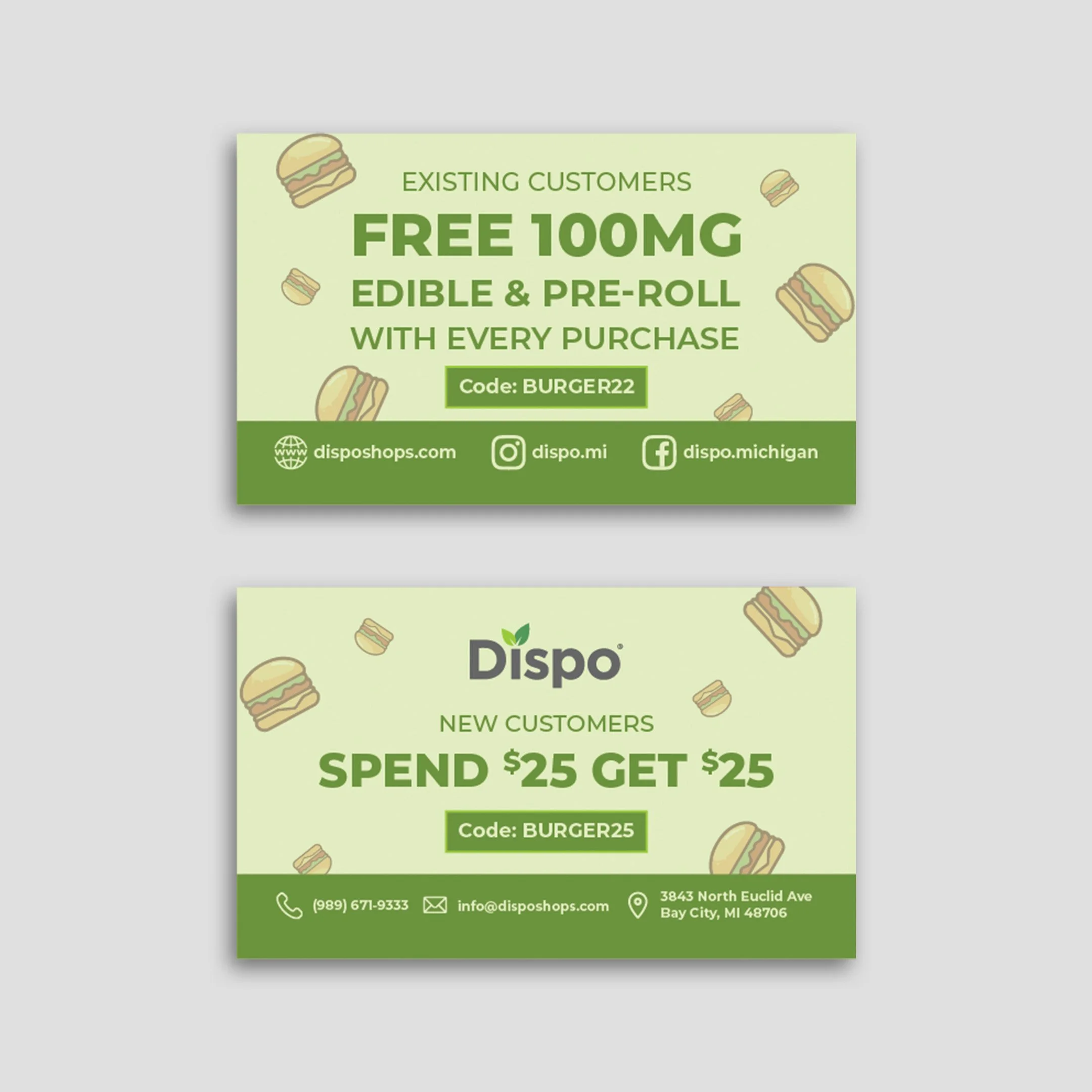 Dispo offers coupons and discounts to the public and participates in parades, where we create themed coupons to match the parade’s theme. For in-store distribution, we design coupons tailored to align with the brand’s identity.