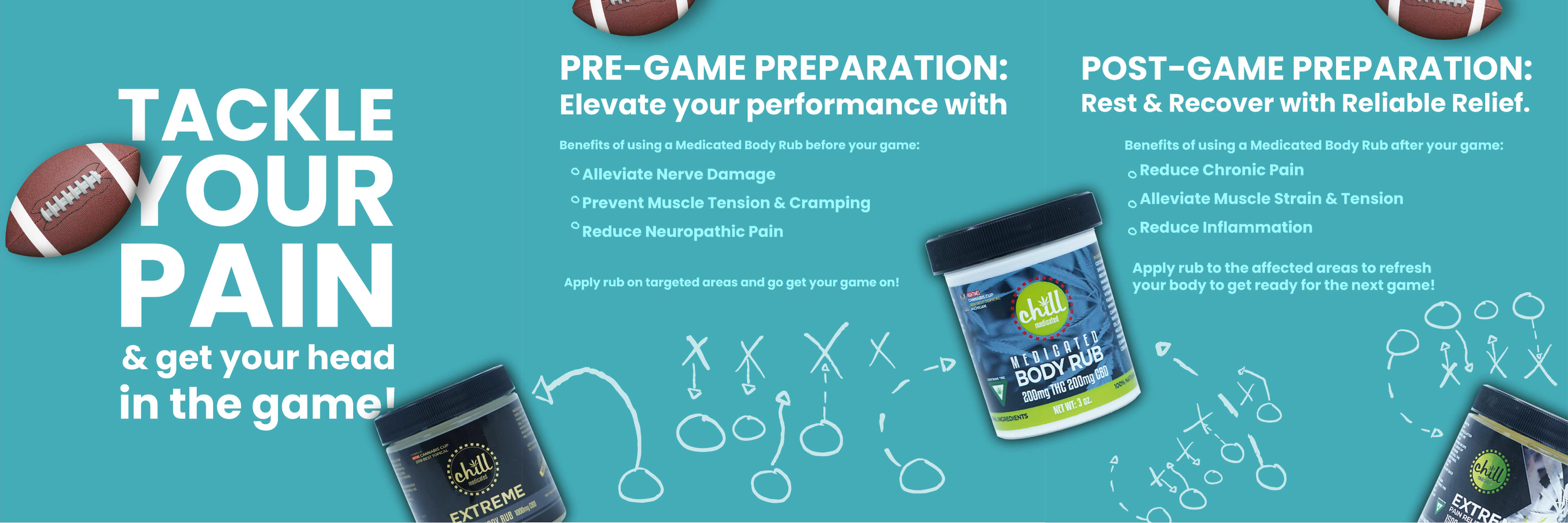Chill Medicated, one of MEDfarms' brands, specializes in topicals designed to alleviate physical pain in muscles and joints. Their branding exudes relaxed, beachy vibes, creating a soothing and calming image that reflects the relief their products provide.